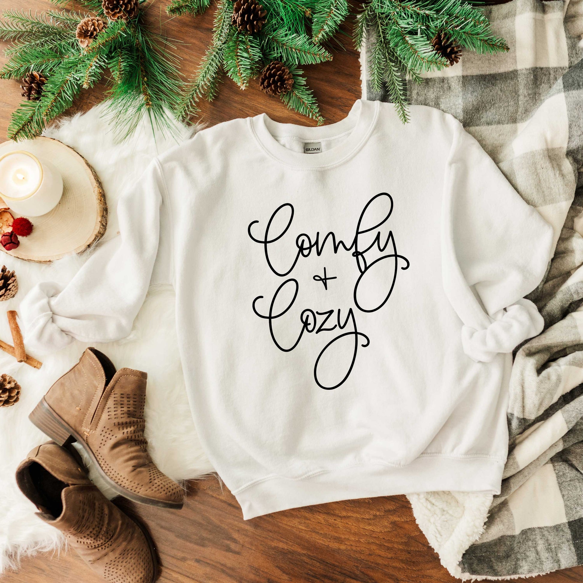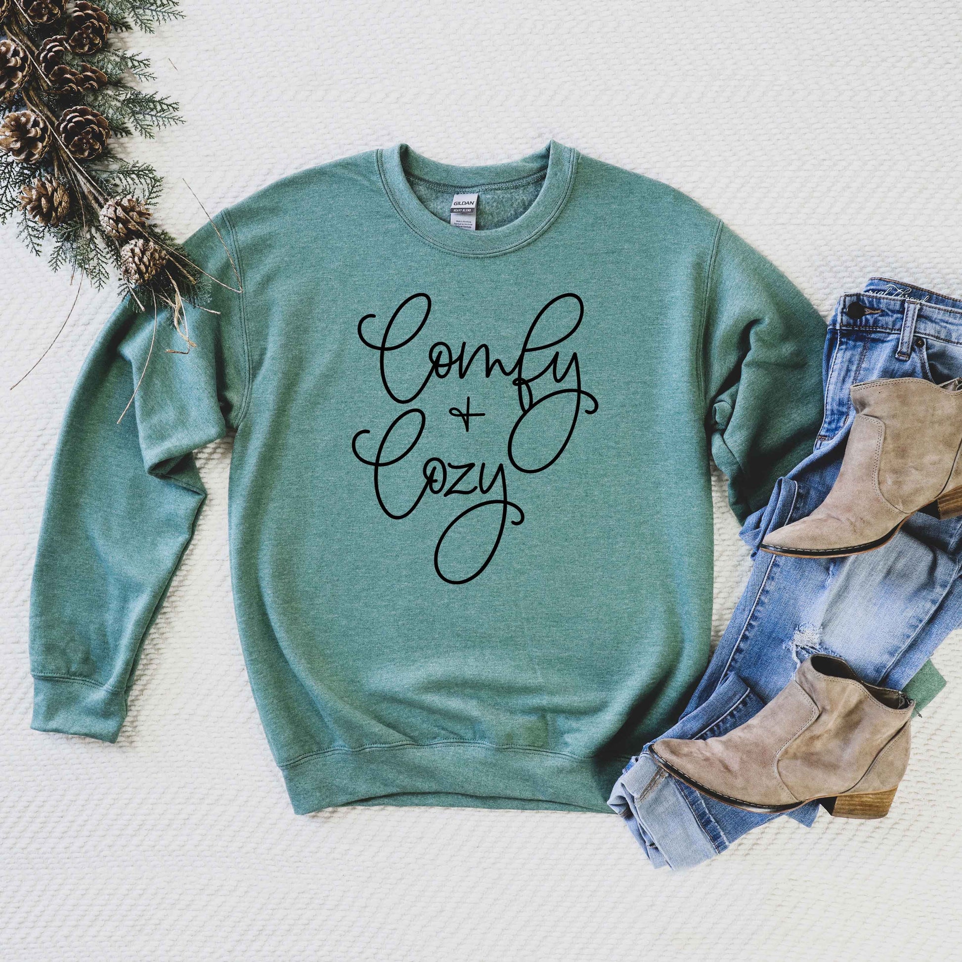 Comfy And Cozy Cursive | Graphic Sweatshirt