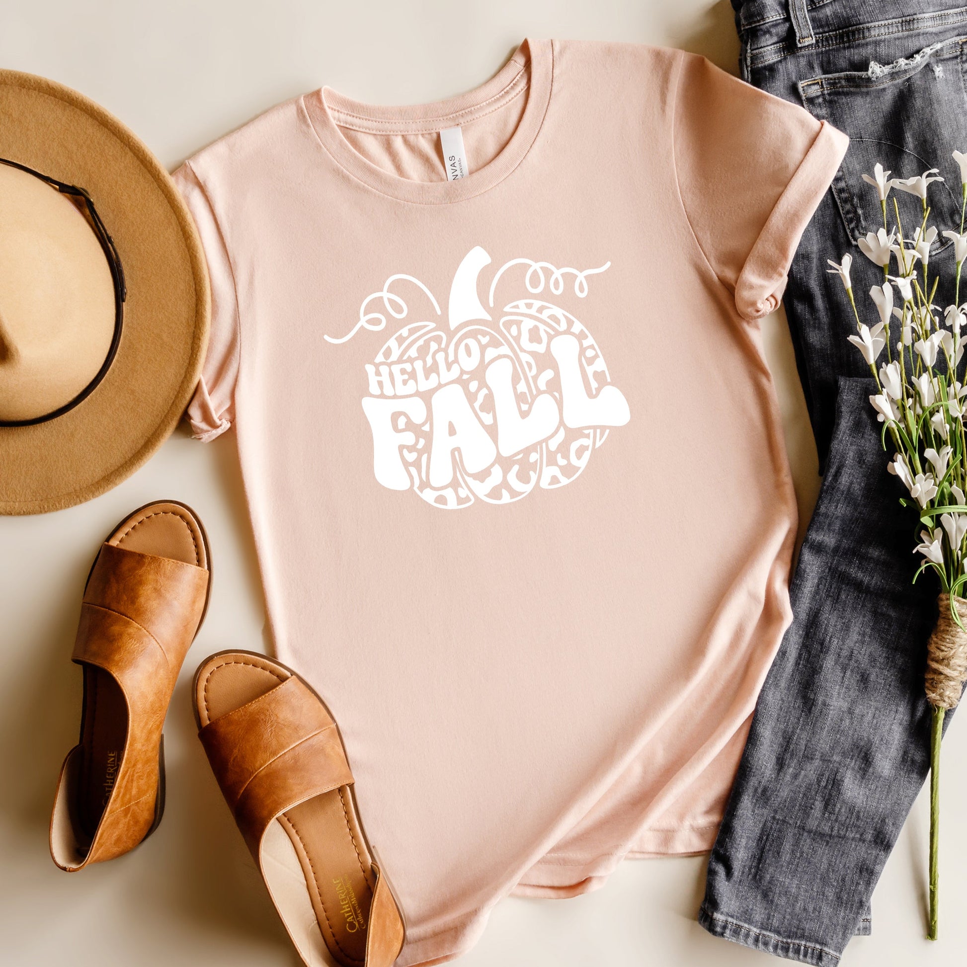 Hello Fall Leopard Pumpkin | Short Sleeve Graphic Tee