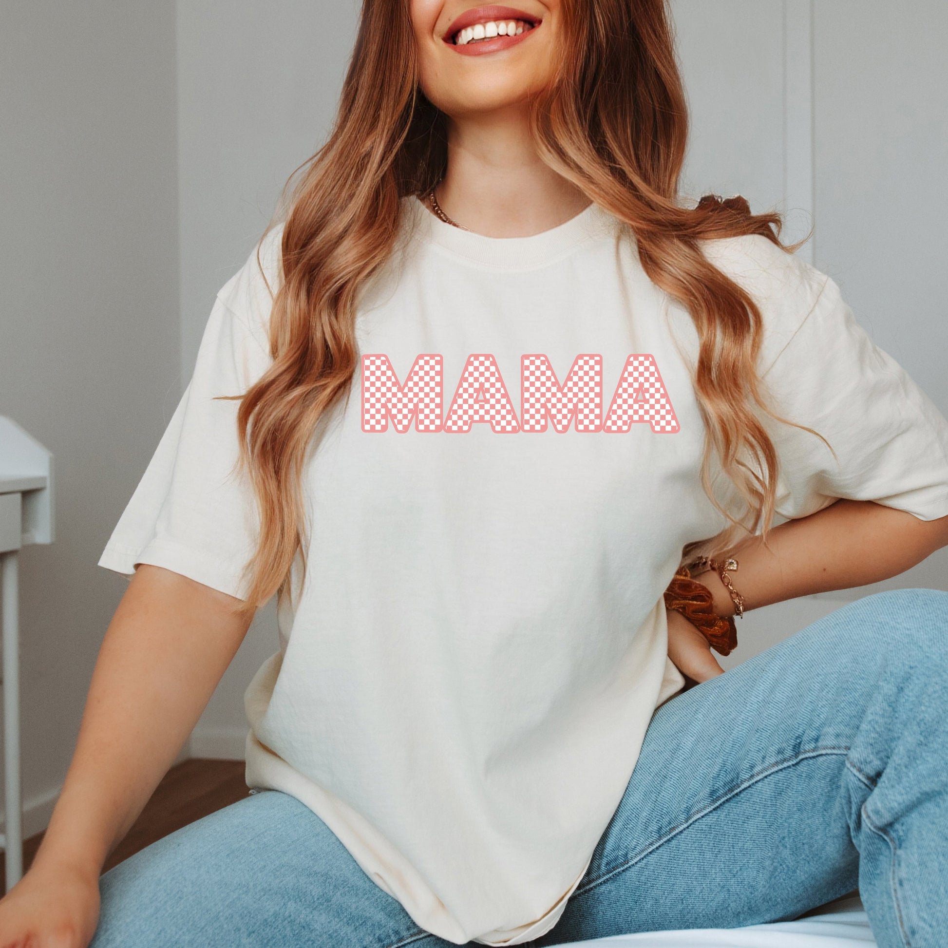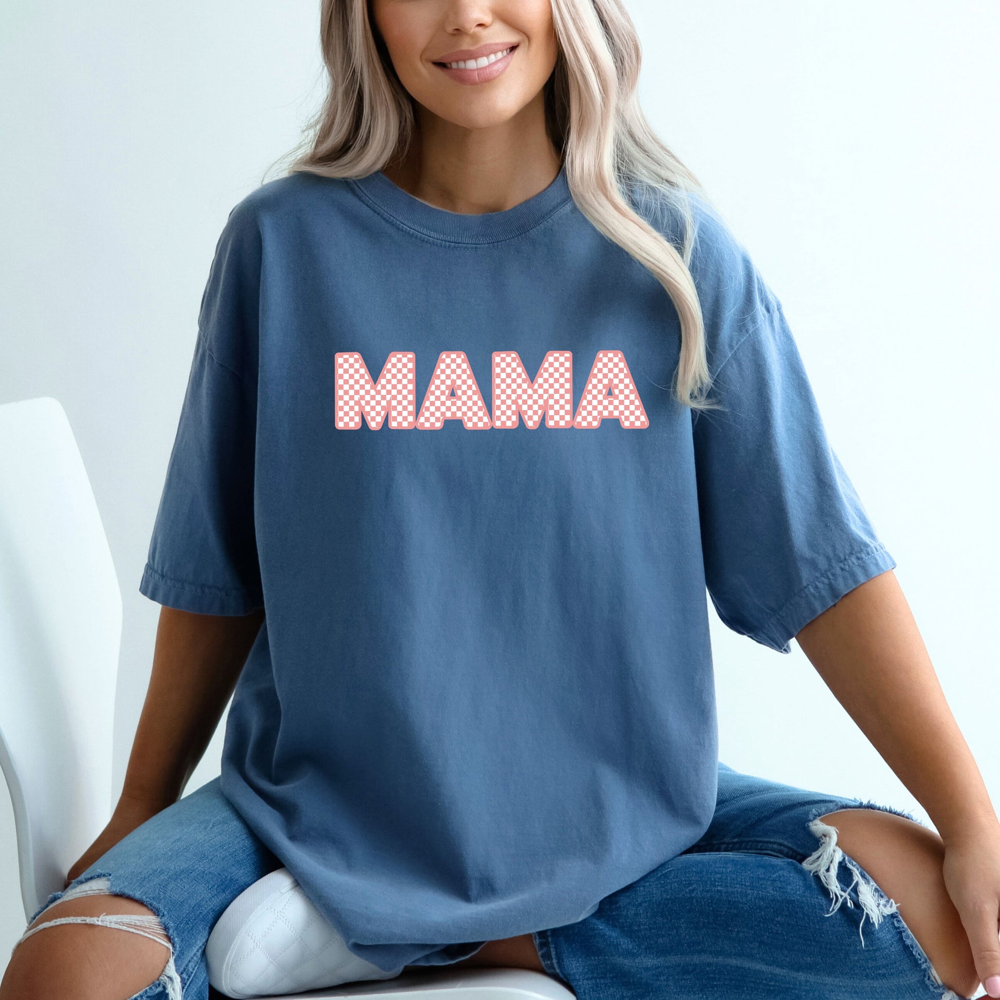 Pink Checkered Mama | Garment Dyed Tee